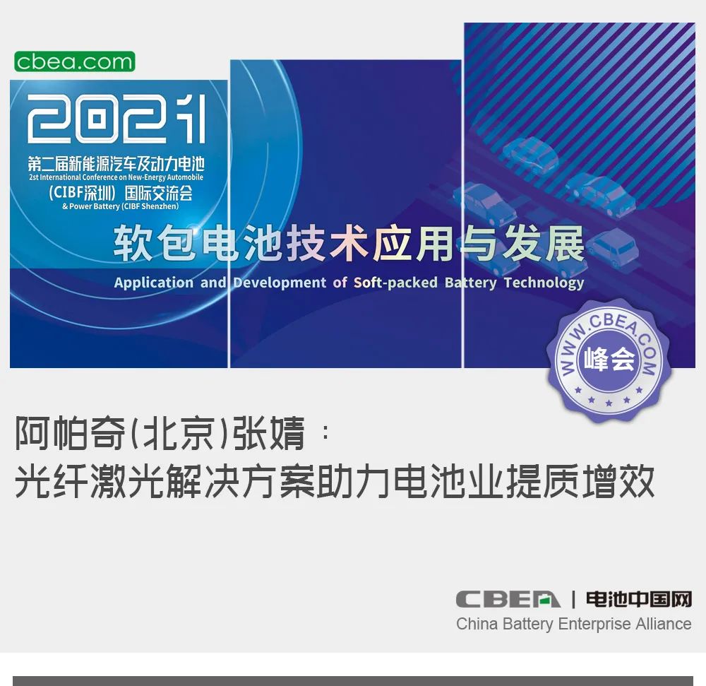 日前,“第二屆新能源汽車及動力電池(CIBF2021深圳)國際交流會”在深圳舉行,在由多氟多冠名的“智能制造助推軟包電池提質降本”專場論壇上,阿帕奇(北京)光纖激光技術有限公司應用部經理張婧發表了主題為“光纖激光解決方案助力電池行業提質增效”的演講。