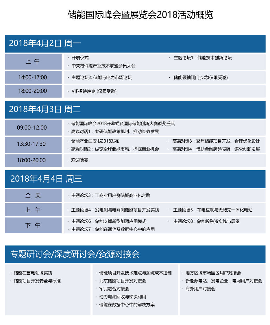 “儲(chǔ)能國(guó)際峰會(huì)暨展覽會(huì)(ESIE)”是在國(guó)家能源局科技裝備司指導(dǎo)下,在中關(guān)村管委會(huì)、中國(guó)能源研究會(huì)支持下,由中關(guān)村儲(chǔ)能產(chǎn)業(yè)技術(shù)聯(lián)盟(CNESA)打造的儲(chǔ)能產(chǎn)業(yè)專業(yè)品牌會(huì)展。“儲(chǔ)能國(guó)際峰會(huì)暨展覽會(huì)2018(ESIE2018)”將于2018年4月2-4日在國(guó)家會(huì)議中心隆重舉行,2018年峰會(huì)將在今年的基礎(chǔ)上進(jìn)一步升級(jí),本次展會(huì)將規(guī)劃出6000平米展示區(qū),設(shè)置100+展位,同期將舉辦國(guó)際儲(chǔ)能創(chuàng)新大賽和新品發(fā)布會(huì),儲(chǔ)能全產(chǎn)業(yè)鏈的領(lǐng)頭企業(yè)將集中... [查看詳細(xì)]