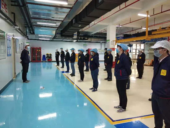 各廠區(qū)出入口設(shè)立防疫檢查處,檢查入廠人員的健康申報表、假期往返證明文件及個人體溫,筑起了安全的“第一道防線”!錯峰上下班安排、標(biāo)準(zhǔn)化上下班測溫通道、錯峰就餐、每日集中配送員工家庭所需蔬菜肉類、每日發(fā)放2只口罩及1瓶灌裝消毒水、每日疫情防控知識宣傳……