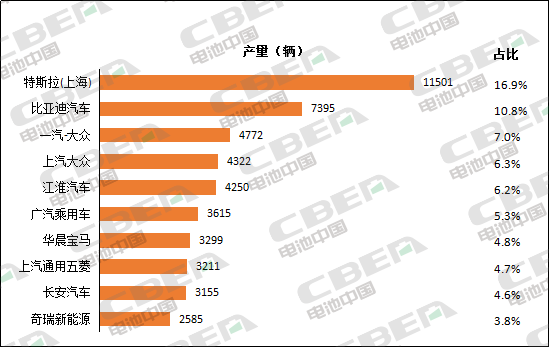 值得注意的是,本月外資及合資車企發(fā)力,在5月新能源乘用車產(chǎn)量排名前十的車企中,外資及合資車企占半數(shù)。排名前十的車企依次為特斯拉(上海)、比亞迪汽車、一汽-大眾、上汽大眾、江淮汽車、廣汽乘用車、華晨寶馬、上汽通用五菱、長安汽車、奇瑞新能源,產(chǎn)量合計占5月新能源乘用車產(chǎn)量的70.6%。其搭載的動力電池基本是來自國內(nèi)裝機量排名靠前的幾家電池生產(chǎn)企業(yè)。