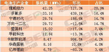 軟包電池裝機量增長主要是受捷威動力、多氟多、寧德時代和卡耐新能源等電池生產(chǎn)企業(yè)裝機量大幅增長帶動。