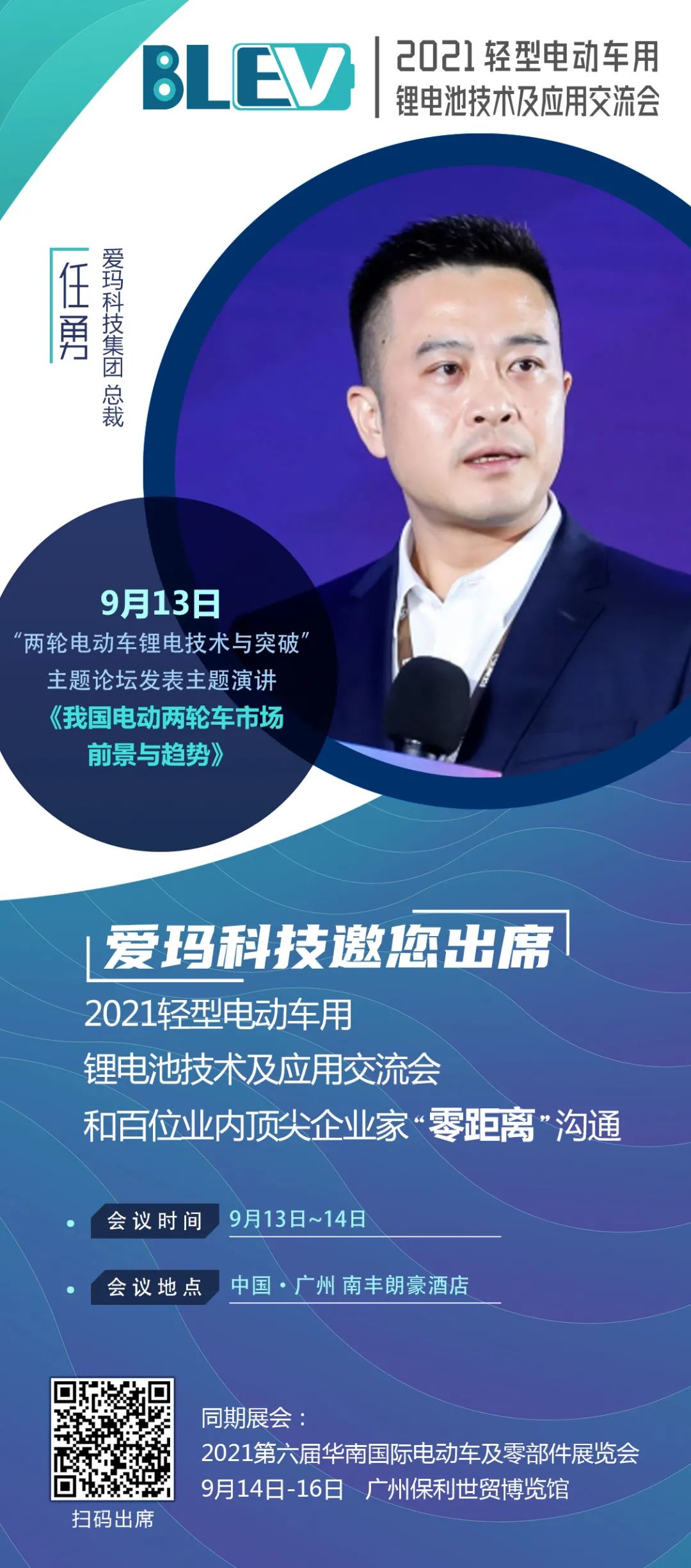 愛瑪科技總裁任勇將出席“2021輕型電動車用鋰電池交流會”