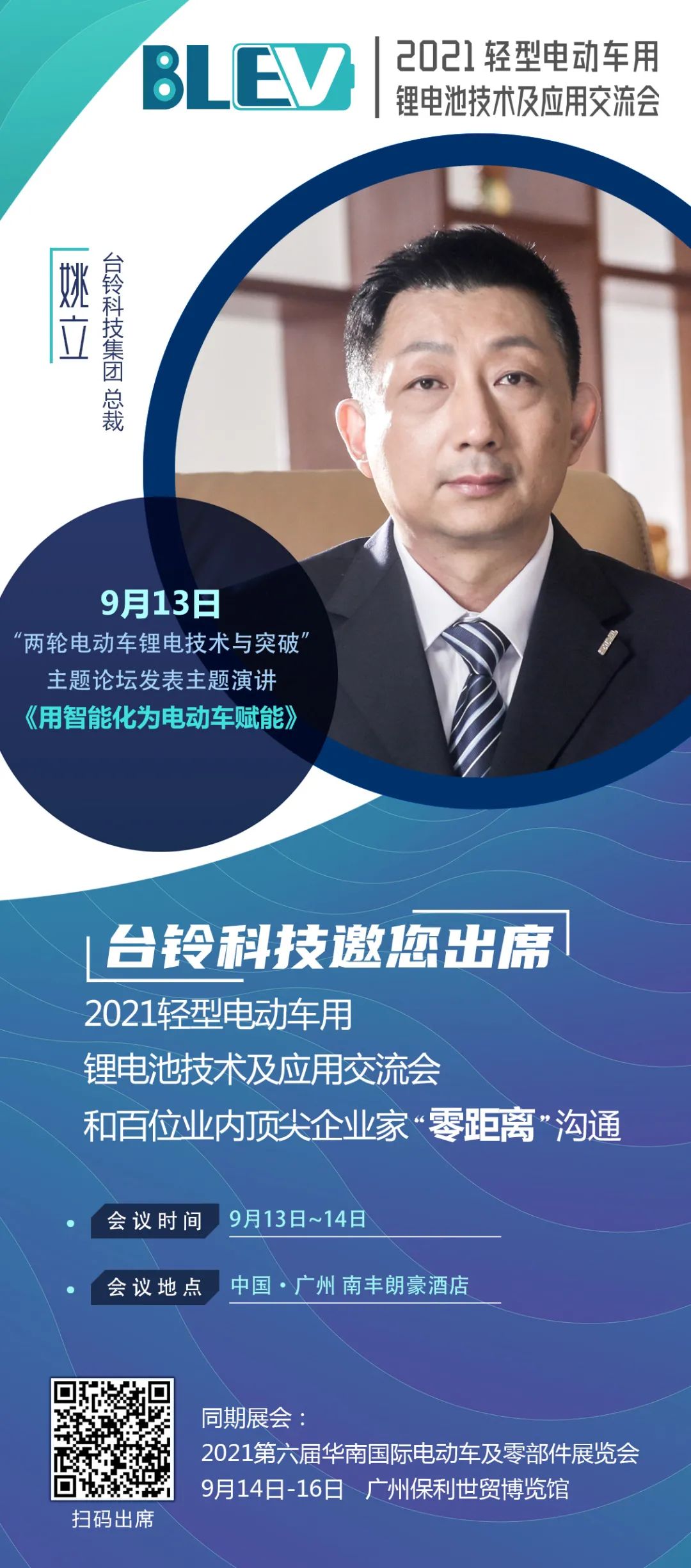 9月13-14日,深圳臺(tái)鈴科技集團(tuán)有限公司總裁姚立,應(yīng)邀將出席在廣州舉行的“2021輕型電動(dòng)車用鋰電池技術(shù)及應(yīng)用交流會(huì)”,并發(fā)表關(guān)于“用智能化為電動(dòng)車賦能”的主題演講,敬請(qǐng)期待。