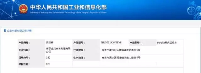 近日,中華人民共和國工業和信息化部發布了2017年第298批《道路機動車輛生產企業及產品公告》,配套了猛獅三元鋰離子電池的南京金龍“開沃牌”純電動廂式運輸車NJL5031XXYBEV8和NJL5032XXYBEV8成功入選。