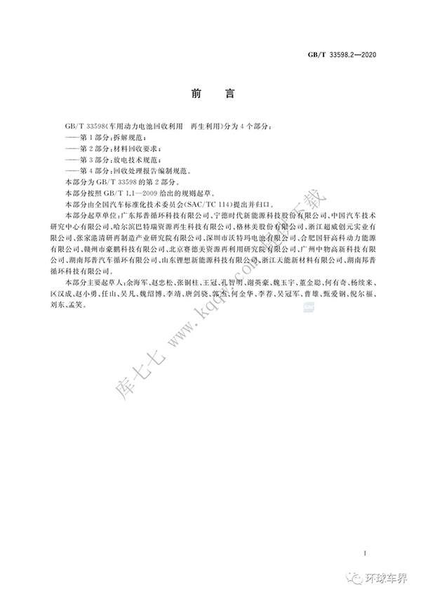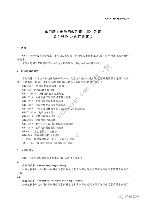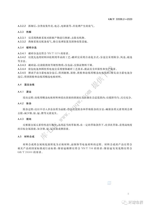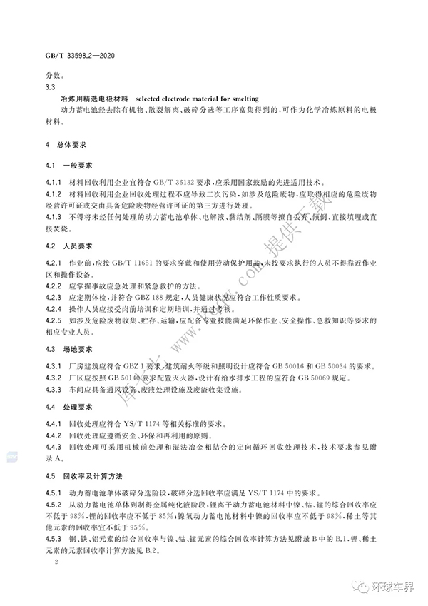 GB∕T 33598.2-2020 車用動(dòng)力電池回收利用 再生利用 第2部分:材料回收要求