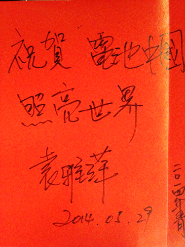 香港江北聯誼會副會長袁雅萍女士為電池中國網站上線題寫寄語