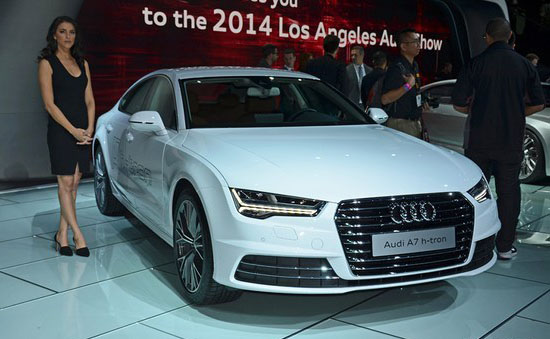 2014洛杉磯車展上,奧迪正式發布了A7 Sportback h-tron quattro概念車,新車采用了奧迪家族最新的“Y”型大燈設計,科技感十足。但車尾處XX TFSI的標識被h-tron取代,以表明其氫燃料電池車身份。該車配有四個氫氣罐,其百公里氣耗約為1千克。