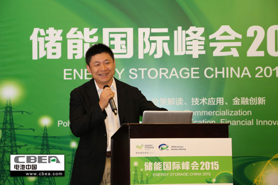 中關村儲能產業技術聯盟第二屆常務理事會副理事長胡迎輝做工作報告