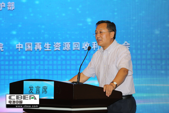 中國電池工業協會理事長韓作樑在成立儀式上致辭