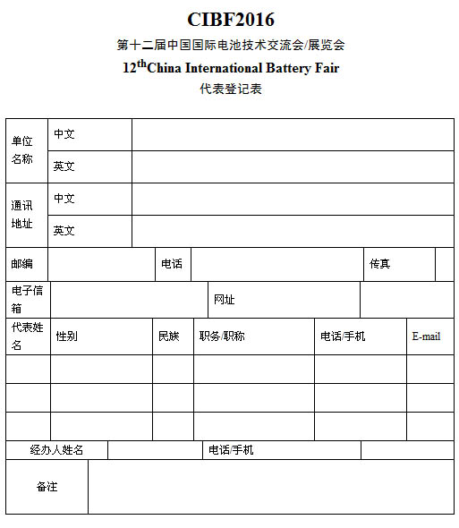 中國化學與物理電源行業協會將于2016年5月24日~26日舉辦規模空前的“第十二屆中國國際電池技術交流會/展覽會(CIBF2016)”。現將本會已確認的“CIBF2016國際先進電池前沿技術研討會”演講名冊和這次交流會焦點與重點內容簡介對外公布。我們同時對會議的報名、注冊等重要事項做出通報,歡迎大家早日安排參加這次盛會的計劃,并及早報名注冊,共同支持CIBF2016展覽會/技術交流會的成功舉辦,努力推進中國化學與物理電源行業在“十三五”開好頭,并保持健康、持續的發展勢頭。
