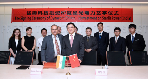 2015年5月30日,廣東猛獅電源科技股份有限公司(以下簡稱“猛獅科技”)投資印度星光電力系統有限公司(以下簡稱“星光電力”)簽約儀式在猛獅科技舉行,猛獅科技董事長兼總裁陳樂伍先生與星光電力股東代表Mr. Sachin Shridhar簽署了合資合作協議。