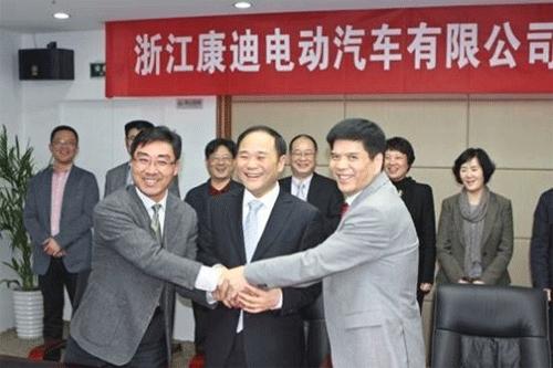 浙江康迪車(chē)業(yè)有限公司和吉利汽車(chē)旗下子公司上海華普國(guó)潤(rùn)汽車(chē)有限公司于2013年3月22日下午在中國(guó)浙江省杭州市西湖區(qū)正式簽署合資協(xié)議,成立浙江康迪電動(dòng)汽車(chē)有限公司(以下簡(jiǎn)稱(chēng)合資公司)。合資公司注冊(cè)資本為人民幣10億元,將由上海華普國(guó)潤(rùn)及康迪車(chē)業(yè)分別擁有50%權(quán)益,以從事投資、研發(fā)、生產(chǎn)、市場(chǎng)推廣及銷(xiāo)售電動(dòng)汽車(chē)業(yè)務(wù)。