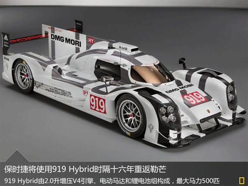 而在今年6月舉行的2014勒芒24小時(shí)耐力賽上,保時(shí)捷將使用全新開發(fā)的919 Hybrid賽車參加頂級參賽組LMP1的爭奪。919 Hybrid造型設(shè)計(jì)明顯傳承自保時(shí)捷 917 KH Coupe勒芒賽車,混動(dòng)系統(tǒng)由一臺2.0升單渦輪增壓V4直噴汽油引擎,一臺前置的電動(dòng)馬達(dá)和一個(gè)鋰電池組構(gòu)成,其中V4引擎的轉(zhuǎn)速最高可以達(dá)到9,000rpm,最大馬力可達(dá)500匹。
