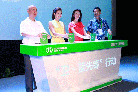 現場受聘為公益大使的濮存昕表示,自己的夢想是讓北京的天氣能像海南那樣清新純凈,不僅自己會購買新能源汽車并讓更多的朋友也購買。春妮大使表示,從今天開始,自己要爭做“衛·藍先鋒”,一起為美麗北京加油。李莉大使則現場為北汽新能源創作了廣告語“每周少開一天車,要開只開北汽新能源純電動車”。王永大使說新能源汽車的排放為零,呼吁更多的人能夠關注北汽新能源汽車。四位大使現場試駕了北汽E150EV、紳寶EV,對電動汽車環保安靜、操控便捷等優點表示贊許。