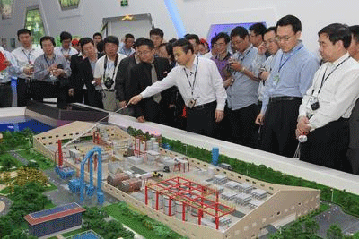 董事長張?zhí)烊蜗騾⒂^嘉賓介紹循環(huán)產(chǎn)業(yè)園