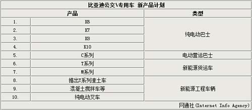 有調查結果顯示以節能、環保政策為大背景,國內外各大城市都已出現新能源公共交通和專用車輛的供應缺口。現階段,比亞迪新能源車型主要集中在E6出租車、K9電動大巴和必比亞迪秦雙?;靹榆囆皖I域,根據比亞迪的戰略規劃,未來新能源車將集中在下列十大領域發力:城市公交、出租車、城際營運、電商物流、城市建筑物流、城市環衛、私家車、倉儲物流,以及礦山、碼頭(港口)、機場等工程車輛。