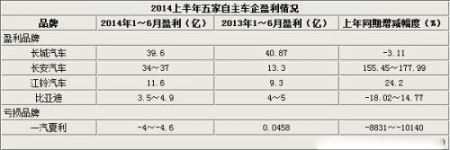 2014年已過了一半,又到中報放榜時。目前國內已有多家上市車企陸續發布了上半年的業績報告,然而值得注意的是,雖然大部分國內車企仍處于盈利狀態,但今年車企業績與往年相比出現了嚴重的兩極分化趨勢,這其中以長安汽車和一汽夏利最為明顯。近日網通社通過對國內五家自主車企(截至目前為止已公布的)上半年盈利狀況進行調查后發現,盡管長城汽車以39.6億的盈利額位居榜首,但其與去年同期相比整體呈下降趨勢。