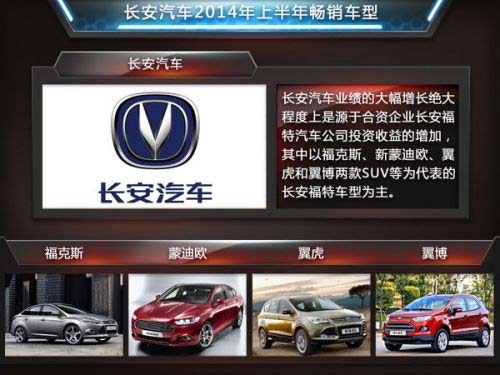 雖然2014年上半年自主品牌整體表現不佳,吉利、奇瑞、比亞迪等在內的自主品牌汽車企業均出現不同程度下降,甚至連之前一直保持增長的上汽集團乘用車公司今年上半年也首次出現了2.7%的負增長,但長安汽車上半年的業績卻同比大幅上升,歸屬于上市公司股東的凈利潤較上年同期增長了155.45%—177.99%,盈利可達到34-37億元。觀長安汽車的銷量公告便可發現,其業績的大幅增長絕大程度上是源于合資企業長安福特汽車公司投資收益的增加,其中以福克斯、新蒙迪歐、翼虎和翼博兩款SUV等為代表的長安福特車型銷量一路飄紅,使上半年銷量累計同比勁增了39%。