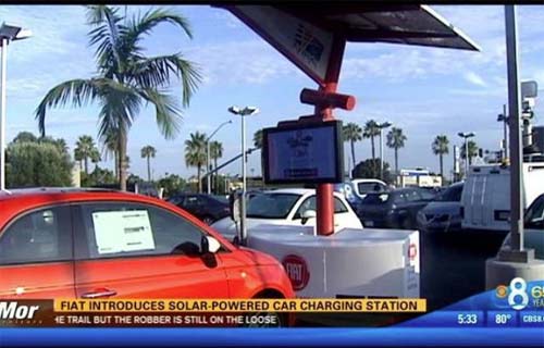 據美國媒體7月31日報道, 電動汽車最大的優點之一就是,如果有一個太陽能電池板或風力發電裝置就可以利用自然免費充電。而菲亞特日前在圣迭戈(San Diego)停車場建設的太陽能充電站就可以做到這一點。