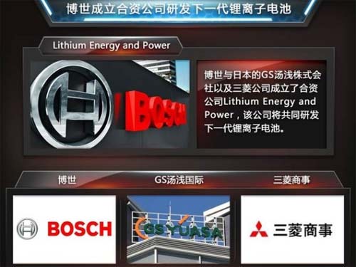 在9月2日的博世技術(shù)創(chuàng)新體驗(yàn)日中,博世集團(tuán)董事會成員、亞太區(qū)負(fù)責(zé)人泰瑞來表示,博世與日本的GS湯淺株式會社以及三菱公司成立了合資公司,該公司將共同研發(fā)下一代鋰離子電池,希望能夠?qū)㈦姵氐哪苄嵘槐丁:腺Y公司Lithium Energy and Power中,博世持股50%,GS湯淺國際與三菱商事分別持股25%,董事會也依持股比例組成。