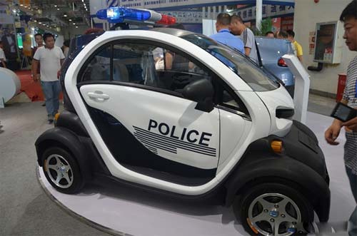 展會現場,立通新能源展出一款“警務版”微米電動汽車,前衛的造型加上警車的元素顯得十分酷炫。于波表示,E28的電動特性非常適合在機場這樣的封閉環境使用,城管、物業巡邏使用這車也很合適。另外,立通新能源計劃向寧波市推薦微公交模式,采用E28車型作為短途代步工具。