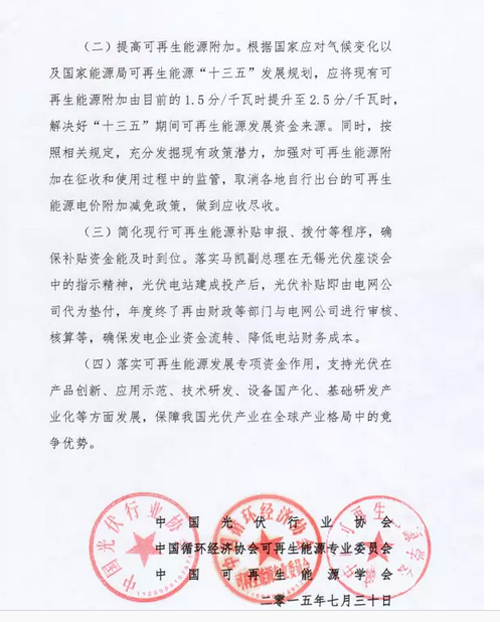 [摘要]作為中國最具影響力的三大光伏行業協會:中國光伏行業協會、中國循環經濟協會可再生能源專業委員會、中國可再生能源學會聯名提交有關促進光伏行業發展的三大政策文件。