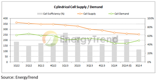 ▲圓柱形電池供需狀況(圖片來源:EnergyTrend)