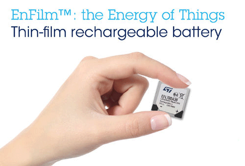意法半導體(STMicroelectronics,簡稱ST)開始限量生產(chǎn)先進的厚度不足0.25mm的EnFilm充電電池。這種薄如紙的電池讓設(shè)計人員擺脫了標準電池尺寸的限制,是下一代個人技術(shù)和物聯(lián)網(wǎng)(IoT)應用最理想的電源解決方案。