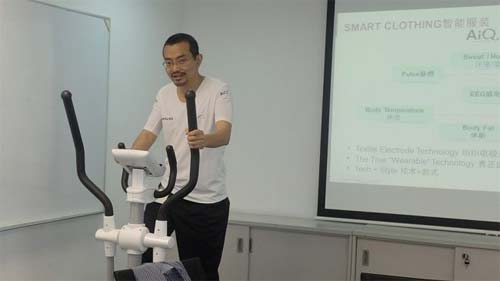 這件衣服是AiQ公司和博通合作的可穿戴運(yùn)動(dòng)T恤,可以測(cè)量心率、ECG等多個(gè)信號(hào),據(jù)稱為了測(cè)量準(zhǔn)確——比如臂圍要正好合適以便準(zhǔn)確測(cè)量心率,這套衣服是專門量身制作的。(備注:AiQ公司是一家服裝面料廠商,耐克、阿迪達(dá)斯等都有采用其運(yùn)動(dòng)服裝面料)