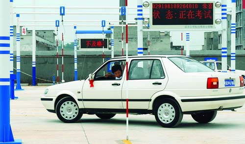 7月8日上午9點,記者在位于中北路公交駕校訓練場的考試現場看到,20名學員正在進行無軌電車駕駛員科目二考試。學員駕駛無軌電車從右邊的乙庫起步,經過兩進兩退倒車入旁邊的甲庫內;完成倒庫后,再經過前方的限寬門,進入丙庫,最后倒車從甲庫出來。