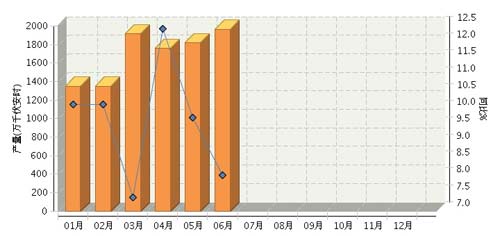 根據(jù)國家統(tǒng)計(jì)局公布數(shù)據(jù),2014年1~6月,全國鉛酸蓄電池行業(yè)累計(jì)完成產(chǎn)量10,737.78萬千伏安時(shí),同比增長8.10%。其中6月份完成產(chǎn)量1962.62萬千伏安時(shí),同比增長8.07%。