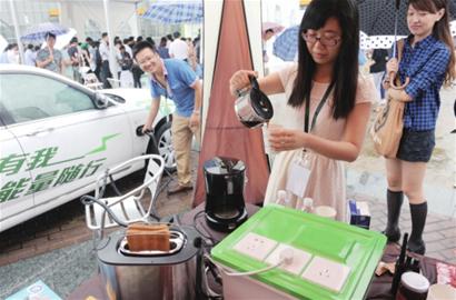 盡管燃料電池轎車外觀和其他新能源車差不多,可內部卻大有乾坤。“它充一次氫氣只要3分鐘,可跑300-400公里。”上汽集團前瞻技術研究部總監黃晨東介紹說,燃料電池車只“喝”氫氣,徹底零污染。而燃料電池除提供行駛動力外,還可轉化用來烤面包、燒咖啡等。“長途旅行不用擔心用餐啦。”現場體驗者對此感到很驚奇。