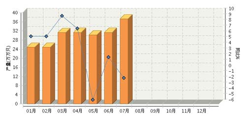 根據(jù)國家統(tǒng)計局公布數(shù)據(jù),全國原電池及原電池組(折R20標準只)行業(yè)累計完成產(chǎn)量216.66億只,同比增長1.71%。其中:7月份完成產(chǎn)量37.3億只,同比下降1.44%。2014年全國原電池及原電池組行業(yè)月度產(chǎn)量及同比如下圖所示。