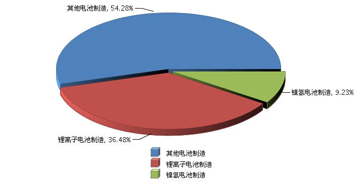 圖7: 2014年1~6月全國電池行業(yè)累計主營業(yè)務收入行業(yè)小類占比情況