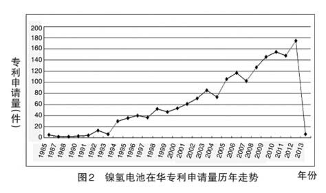據(jù)國(guó)家知識(shí)產(chǎn)權(quán)局統(tǒng)計(jì),在鎳氫電池領(lǐng)域,從 1985 年至 2013 年期間總共有1706 件中國(guó)專利申請(qǐng)(以實(shí)際申請(qǐng)日為準(zhǔn))。其中,國(guó)內(nèi)申請(qǐng)人提交的專利申請(qǐng)總量為 1284 件,占總申請(qǐng)量的 75%,這表明國(guó)內(nèi)發(fā)明人對(duì)鎳氫電池領(lǐng)域的專利申請(qǐng)重視程度很高。但是國(guó)內(nèi)申請(qǐng)人對(duì)外提交的專利申請(qǐng)不多,這顯示國(guó)內(nèi)申請(qǐng)人在鎳氫電池領(lǐng)域的專利布局仍以國(guó)內(nèi)申請(qǐng)為主。此外,國(guó)外申請(qǐng)人在華提交的專利申請(qǐng)總量為 422 件,其中,日本和美國(guó)是國(guó)外來(lái)華提交專利申請(qǐng)量排名前兩位的國(guó)家,分別為 314 件和 43 件。