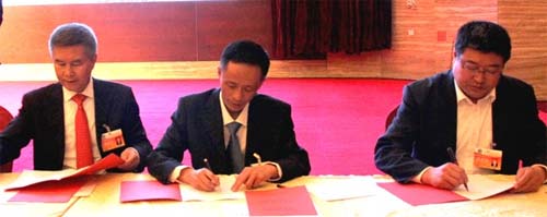 圖:蔣衛平(左)、戴揚(中)、劉玉軍(右)簽約現場