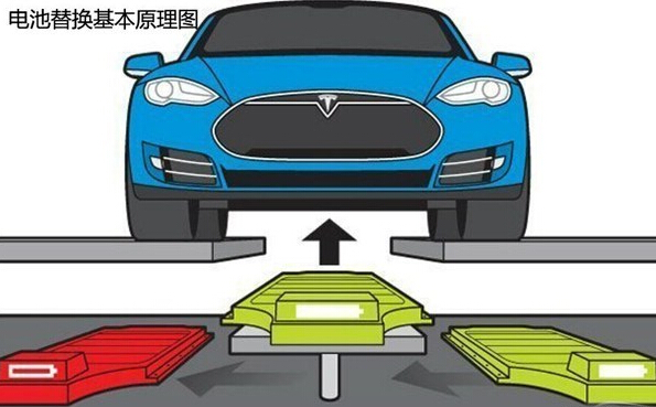 具體操作如圖所示:當(dāng)Model S在充電站停穩(wěn)之后,神奇的事情發(fā)生了——地底下的一扇門(mén)開(kāi)啟,從下面伸出了一個(gè)類(lèi)似于升降臺(tái)的東西把Model S車(chē)底下那塊寬61英寸、長(zhǎng)100英寸、厚4英寸的電池包上面的39顆固定螺絲解開(kāi),再把這個(gè)重達(dá)1300磅的處于低電狀態(tài)的龐然大物從地底下運(yùn)走,取而代之的是另一個(gè)充滿電的龐然大物,然后把以上的過(guò)程重復(fù)一遍,整個(gè)過(guò)程僅90秒。