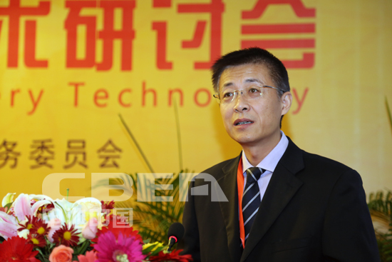 圖為國家工信部消費品工業(yè)司副司長高延敏在會上作主題報告