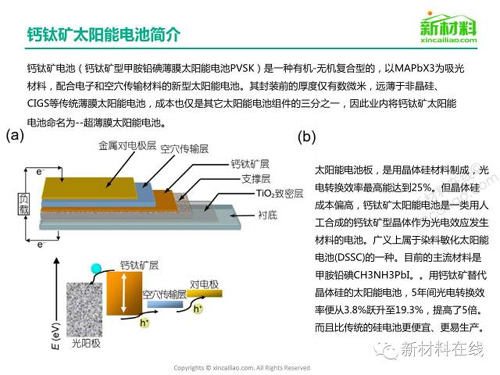 [摘要]作為太陽能電池家族中的一員,鈣鈦礦太陽能電池正慢慢嶄露頭角。鈣鈦礦太陽能電池不僅擁有第一代太陽能電池高轉(zhuǎn)化效率的特點,還有第三代太陽能電池薄膜、柔性化的特點,可用于溶液法卷對卷生產(chǎn)。因此,鈣鈦礦太陽能電池被認作是最有前景的“冉冉新星”。