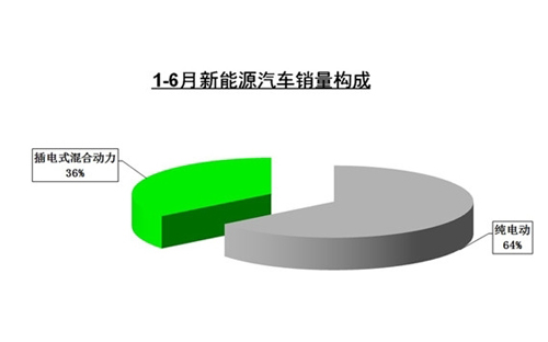 1-6月新能源汽車生產76223輛,銷售72711輛,同比分別增長2.5倍和2.4倍。其中純電動汽車產銷分別完成49042輛和46219輛,同比分別增長3倍和2.9倍;插電式混合動力汽車產銷分別完成27181輛和26492輛,同比增長2倍和1.9倍。