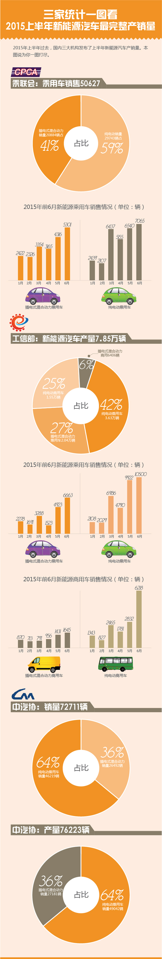 三家統計一圖看2015上半年新能源汽車最完整產銷量