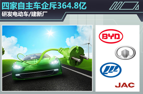 2015上半年國內新能源車市場增長迅猛,其中新能源乘用車銷量達到50,627輛,同比增長近3倍。在中央和地方政府的大力扶持下,眾多自主車企今年以來開始加碼新能源汽車產業。本網梳理了近期力帆、長城、江淮、比亞迪等四家上市公司的公告后發現,四家自主車企計劃總計募資364.8億元人民幣,用于新能源汽車研發、配套產業建設等項目。