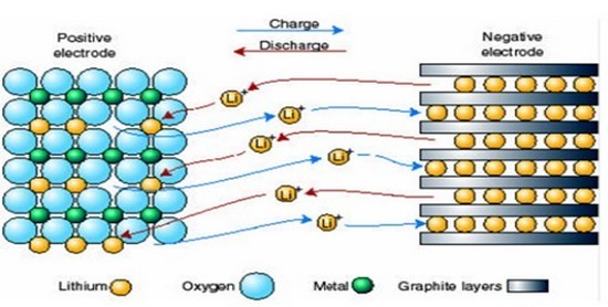鋰離子電池實際上是一個鋰離子濃差電池,正負電極由兩種不同的鋰離子嵌入化合物構(gòu)。充電時,Li+從正極脫嵌經(jīng)過電解質(zhì)嵌入負極,此時負極處于富鋰態(tài),正極處于貧鋰態(tài);放電時則相反,Li+從負極脫嵌,經(jīng)過電解質(zhì)嵌入正極,正極處于富鋰態(tài),負極處于貧鋰態(tài)。