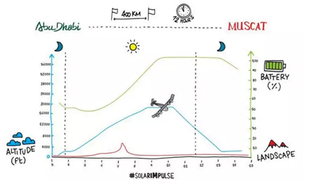 我們都知道,陽光動(dòng)力2號(hào)是一架依靠太陽能供電飛行的飛機(jī),為了保證充分接觸陽光,它每天日出前就必須從1000米的巡航高度爬升至8500米的云層上方,在吸收陽光、充飽電池之后,再在夜晚下降到空氣阻力更小的低海拔高度,以減少飛行中的能量損失。