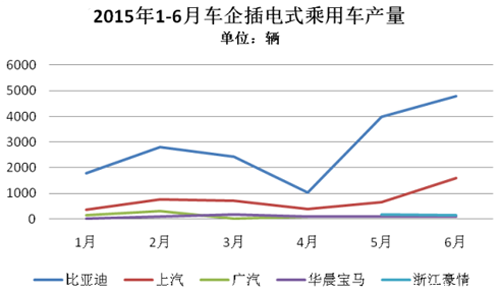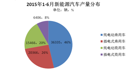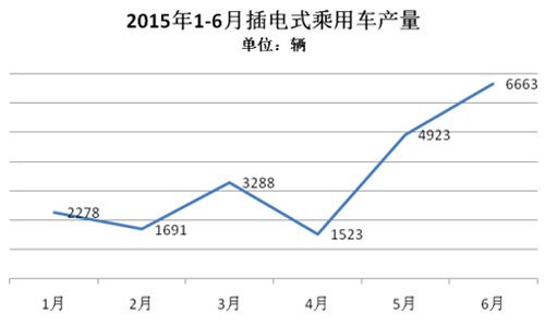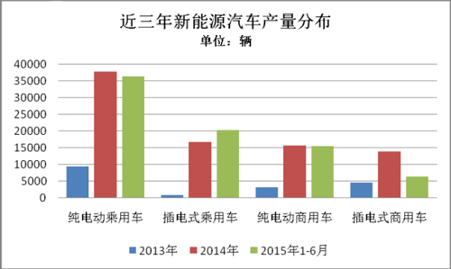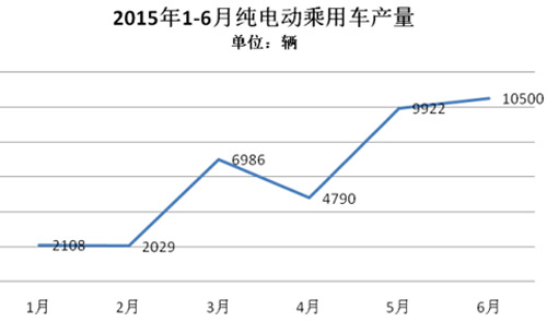 2015年1-6月,純電動(dòng)乘用車生產(chǎn)3.63萬(wàn)輛,接近去年全年3.78萬(wàn)輛的產(chǎn)量,同比增長(zhǎng)3倍。
