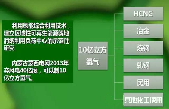 第三期:在內蒙古和國內相對條件適合的地區復制和推廣第1期、第2期成果。擴大HCNG的使用規模,除在城市公交、出租車,私家車等小型車輛上繼續提供高品質的HCNG以外,積極推進重型卡車方向的HCNG推廣,實現棄風電解水制氫及HCNG產業的規模化,以期推動逐步減少風電的棄風電量,HCNG能源的大規模使用,進一步減少CO2排放,實現風力發電的可持續健康發展。