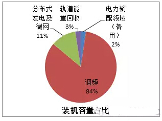 飛輪儲能在不同應用領域中開展項目的裝機容量占比