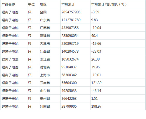 2015年1-7月我國鋰離子電池產(chǎn)量統(tǒng)計(jì)表: