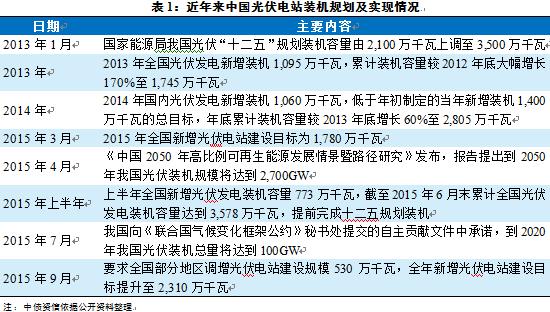發(fā)展清潔能源是國(guó)內(nèi)能源結(jié)構(gòu)調(diào)整的重要方向,光伏作為重要清潔發(fā)電資源近年來(lái)發(fā)展勢(shì)頭良好,2015年上半年提前完成光伏“十二五規(guī)劃”3,500萬(wàn)千瓦裝機(jī)的規(guī)劃。同時(shí),2014年我國(guó)向《聯(lián)合國(guó)氣候變化框架公約》秘書(shū)處提交的自主貢獻(xiàn)文件中承諾,2020年我國(guó)光伏裝機(jī)總量將達(dá)到100GW(1億千瓦),整體光伏電站裝機(jī)提升空間仍較大,2016~2020年年均裝機(jī)規(guī)模平均約1,000萬(wàn)千瓦,目前相關(guān)主管部門(mén)正在制定十三五規(guī)劃,考慮到目前的裝機(jī)速度和規(guī)模,十三五規(guī)劃光伏裝機(jī)目標(biāo)或?qū)⒋笥趯?duì)2020年100GW光伏裝機(jī)的承諾。長(zhǎng)期來(lái)看,光伏作為重要清潔電源發(fā)展空間廣闊,未來(lái)長(zhǎng)期增長(zhǎng)仍可持續(xù)。