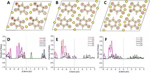 Na2C6H2O4(AD)、Na3C6H2O4(BE)和Na4C6H2O4(CF)的電荷密度圖和電子態密度圖